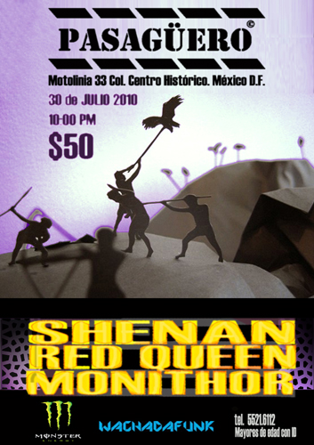 En esta ocasión pueden ver a Shenan compartiendo escenario con Monithor y con Red Queen quintento del Distrito Federal que lanza su EP Adult Frutman este 2010, producido por Eduardo Pacheco (Los Dynamite). En Pasagüero el próximo 30 de julio.