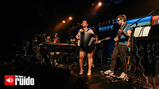 Tras un calentamiento de apenas seis canciones como apoyo de Magda, la banda salió y regresó al escenario para encender le letrero que leía “Snarky Puppy” tras de ellos y comenzar con lo que pareció una enorme pieza musical de casi dos horas que luchaba por ver quién transmitía más efusividad: sí los gritos del público o su majestuosidad musical; el ensamble de nueve músicos en tarima arrancó con dos piezas nuevas que de algún modo el público se las ingenió hasta para tararearlas y aplaudirlas sin perder ritmo o sincronía, y abrumados por la respuesta del público, el grupo representado por el bajista Michael League inmediatamente se mostró sorprendido y agradecido por semejante recepción, pasando a temas como “Flood”, “Binky” y “Shofukan” que en vivo adquieren un grosor apabullante en contraste a las grabaciones de estudio.